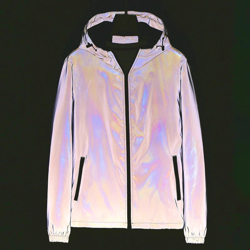 - This lightweight reflective windproof jacket is the perfect party and holiday outfit for men and women or teenage boys and girl. It's perfect for teaming with jeans, shorts and sweatpants. Perfect for music festivals, parties and carnivals to wear it on and you'll get everyone's attention.