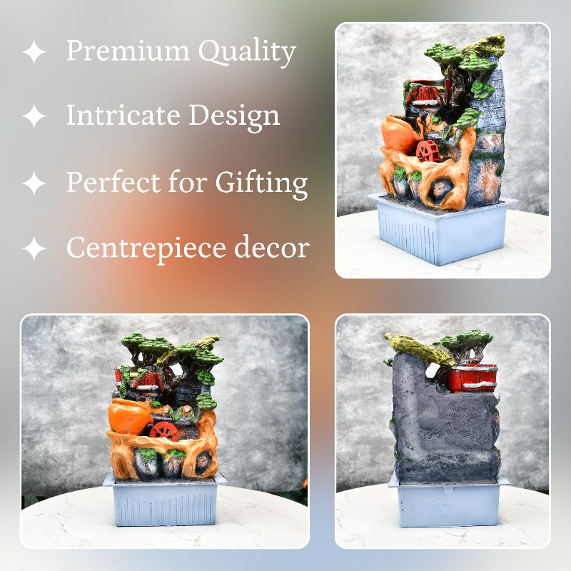 Enhance your living space with the Sowpeace Mystic Cascade Enchantment Fountain, a mesmerizing decorative water fountain designed to bring peace and beauty. Handcrafted using resin art products, this indoor water fountain is a perfect resin showpiece for any setting. The cascading water adds charm to any living room water fountain for home, creating a relaxing environment. Ideal as a Buddha water fountain or a water fountain for home indoor, it transforms any space into a serene retreat. Whether placed as a garden water fountain or as part of your resin decor, it exudes tranquility. Elevate your resin home decor collection with this stunning resin products creation, a true welcome home decoration masterpiece.