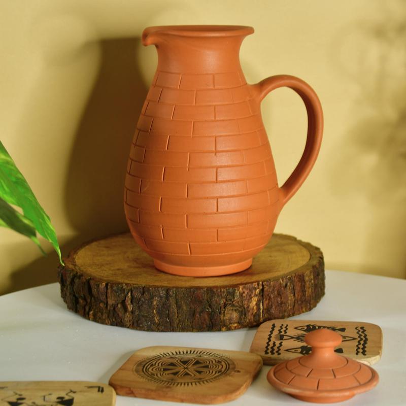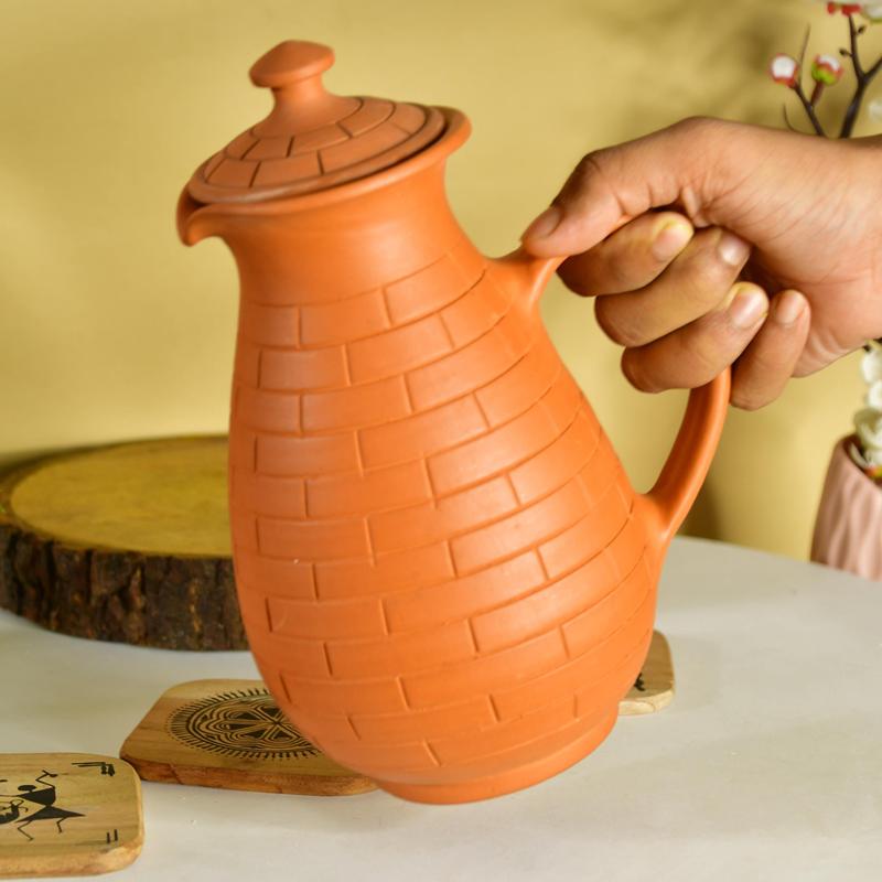 Unique Design: Features a large terracotta jug design, ideal for serving water and other drinks with a traditional touch.