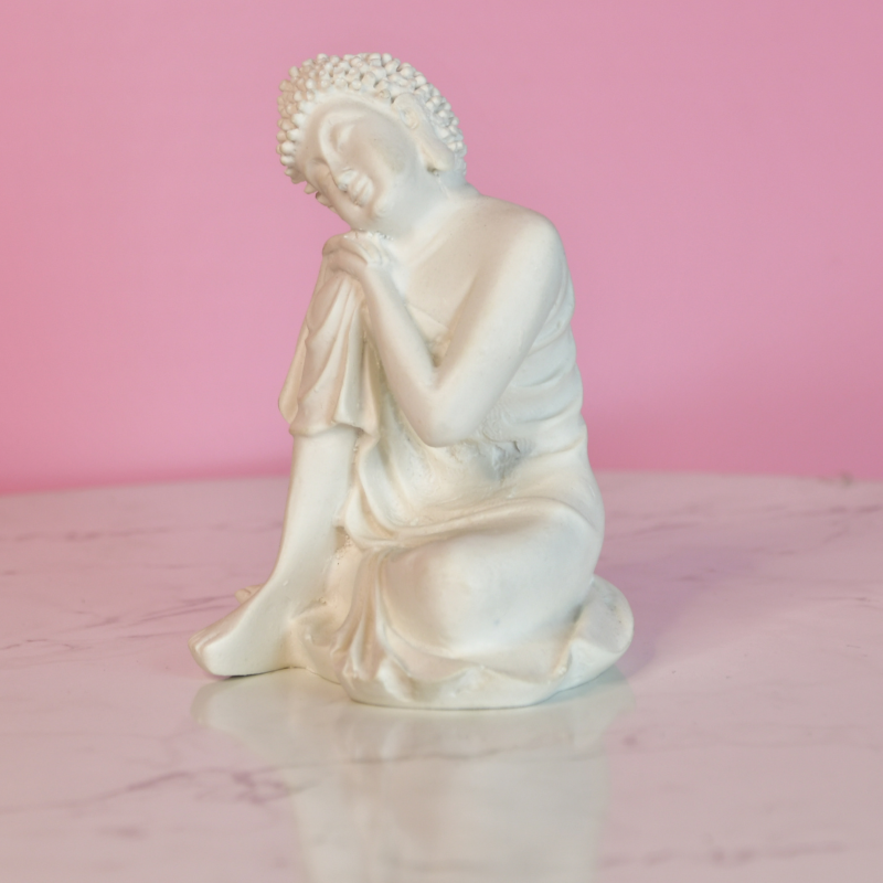 Find tranquility in your space with the Sowpeace Serene Thoughts Buddha figurine, a symbol of peace, mindfulness, and wisdom. Crafted from high-quality resin in a soothing white finish, this elegant sculpture features Buddha in a thoughtful sitting pose, radiating calmness and serenity.