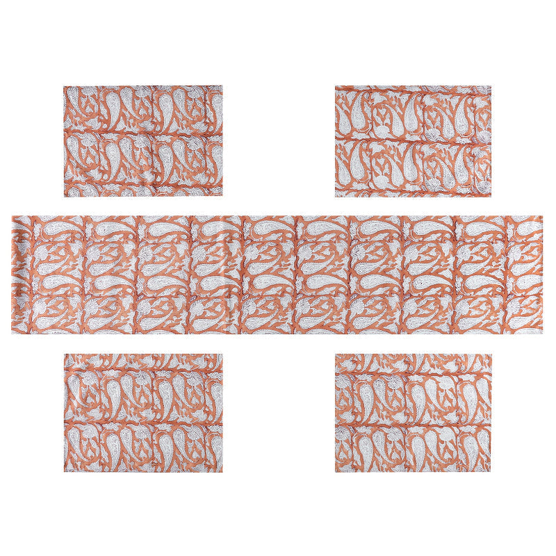 Elevate your dining experience with this sophisticated yet timeless table runner and placemat set. Featuring an exquisite earthy orange and white botanical design, this set seamlessly blends rustic warmth with refined aesthetics. Crafted for both casual and formal dining settings, this piece adds a refreshing touch of nature-inspired beauty to your table. Transform your dining table with this graceful and inviting table runner set that celebrates the charm of nature!